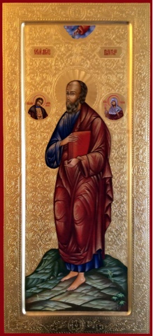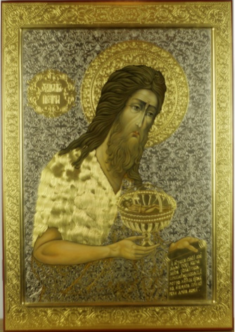 Живописная на золоте c резьбой. Золото сусальное 960 пробы комбинированное с "белым"